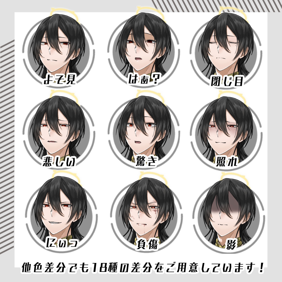 9色の色差分すべてに18種の表情差分が付いています。