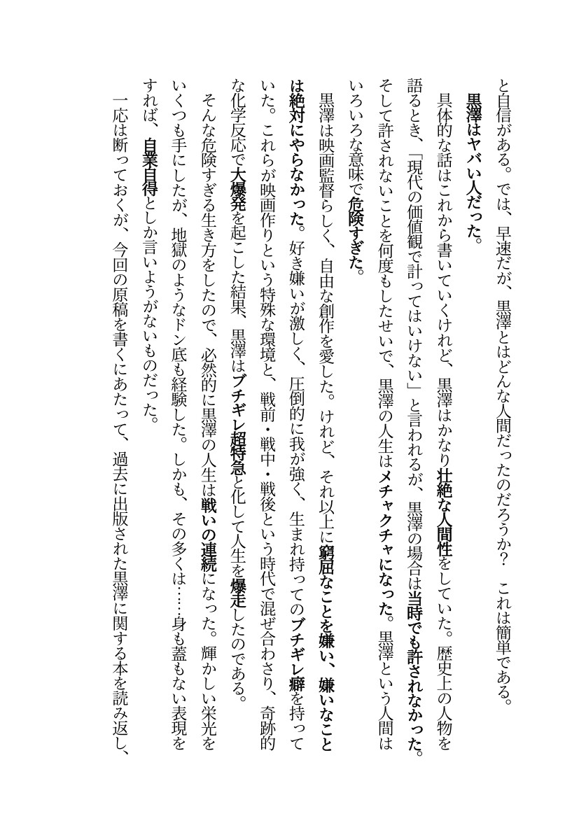 規格外の伝説を紹介しながら、黒澤とは何者だったかを突き詰めて行く。