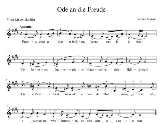 少し考えなおしたものです(ベートーヴェンはその歌詞で第九交響曲を作りましたが私はバイオリン協奏曲にしました)。