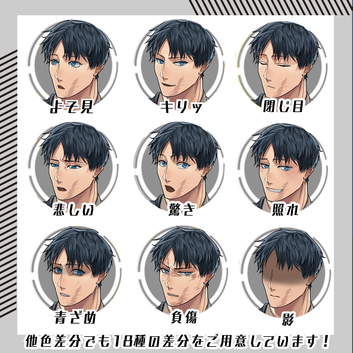 9色の色差分すべてに18種の表情差分が付いています。