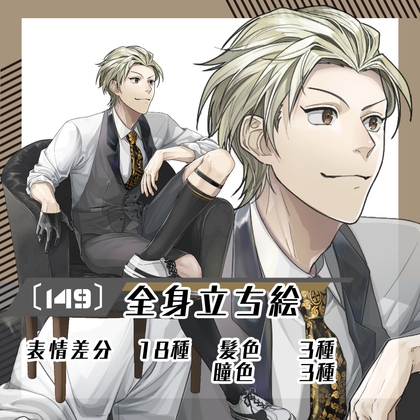 【立ち絵素材149】椅子に腰かけた男性(全身・髪色差分あり)