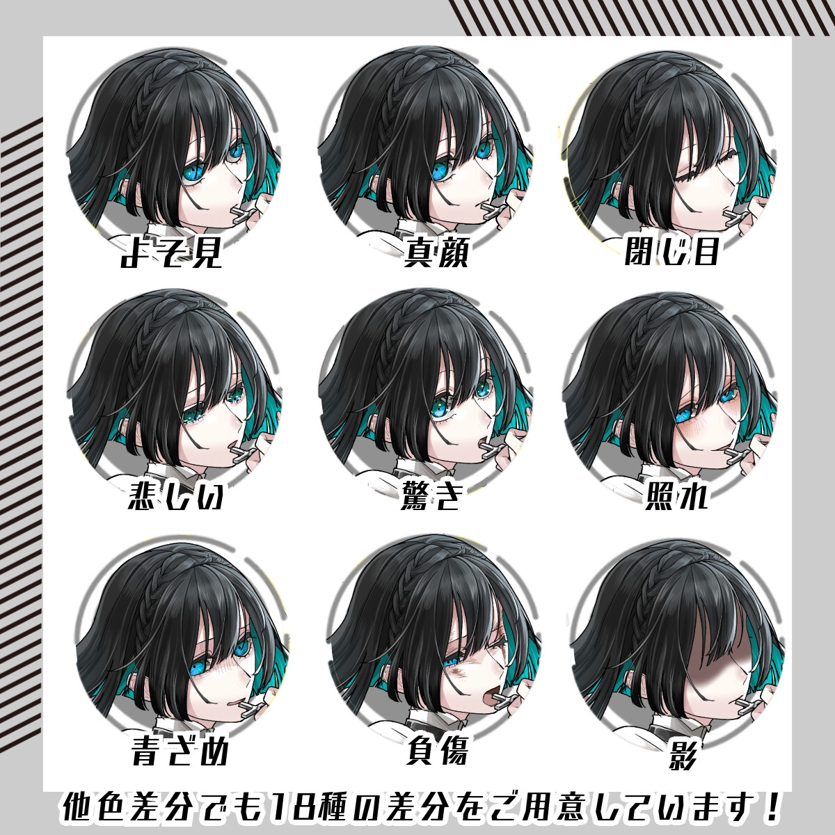 9色の色差分すべてに18種の表情差分が付いています。