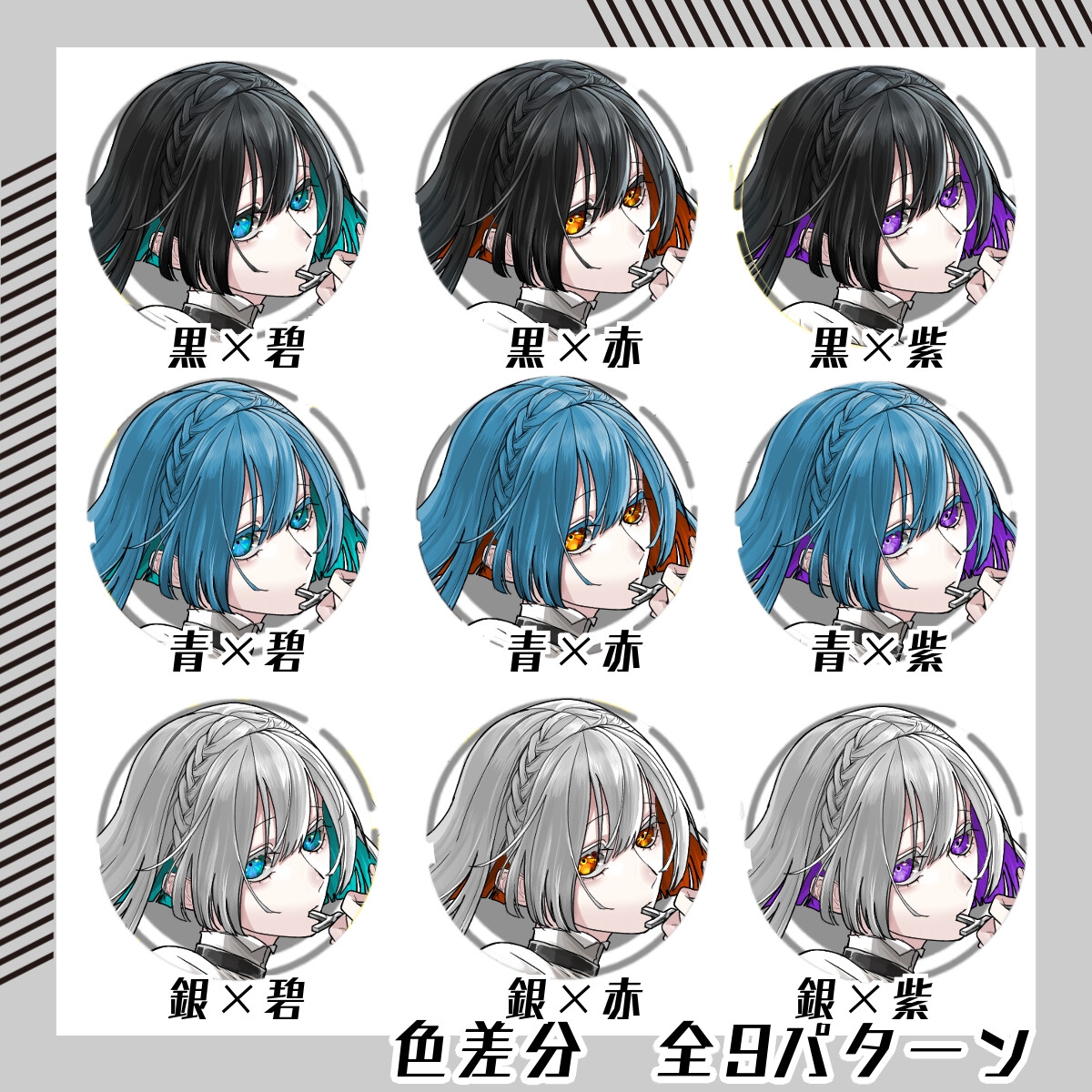 髪色、目の色の組み合わせ差分9種をダウンロードいただけます。