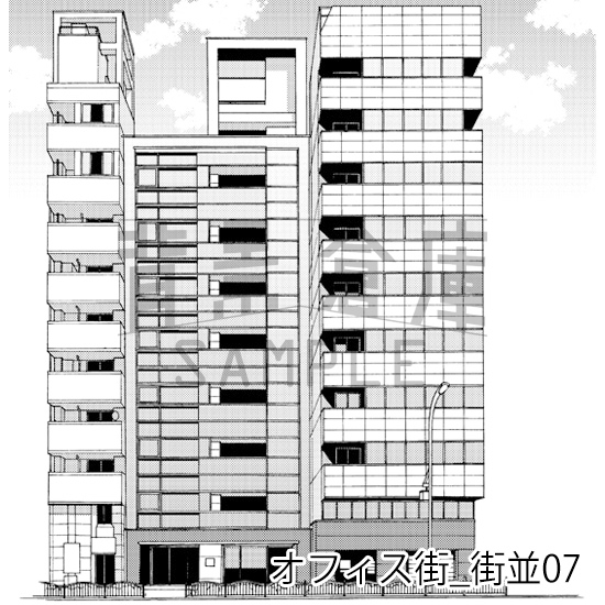 オフィス街_街並07_トーン…幅3,200pixel x 高さ3,300pixel