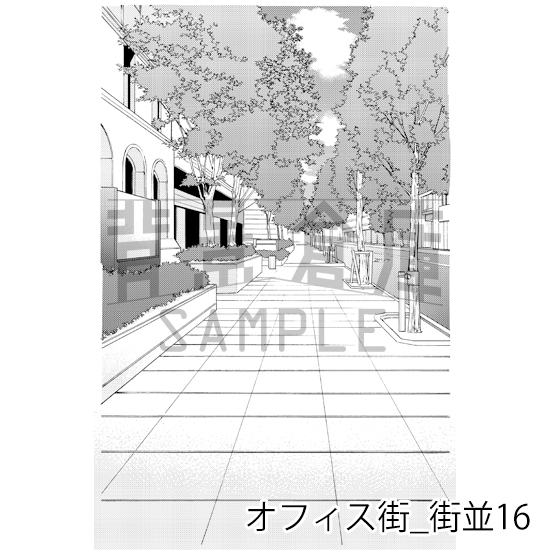 コマに貼り付けて使いたい大きさでカットするだけで手軽に使える、漫画やイラスト制作向けのペン入れ・クリーンナップ・トーン加工済みの背景画像です。