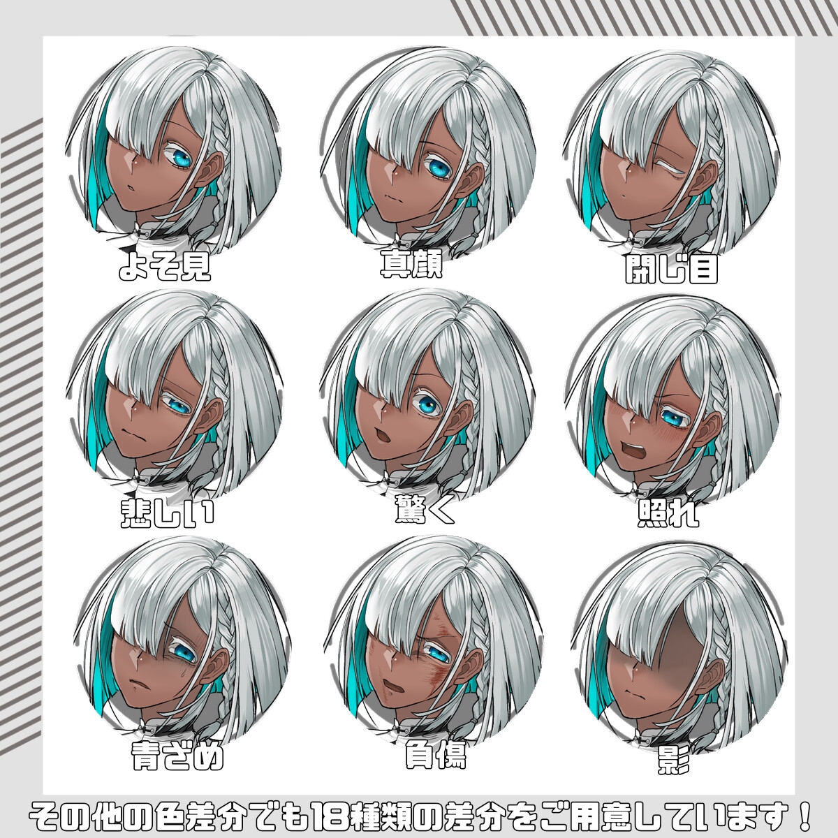 9色の色差分すべてに18種の表情差分が付いています。