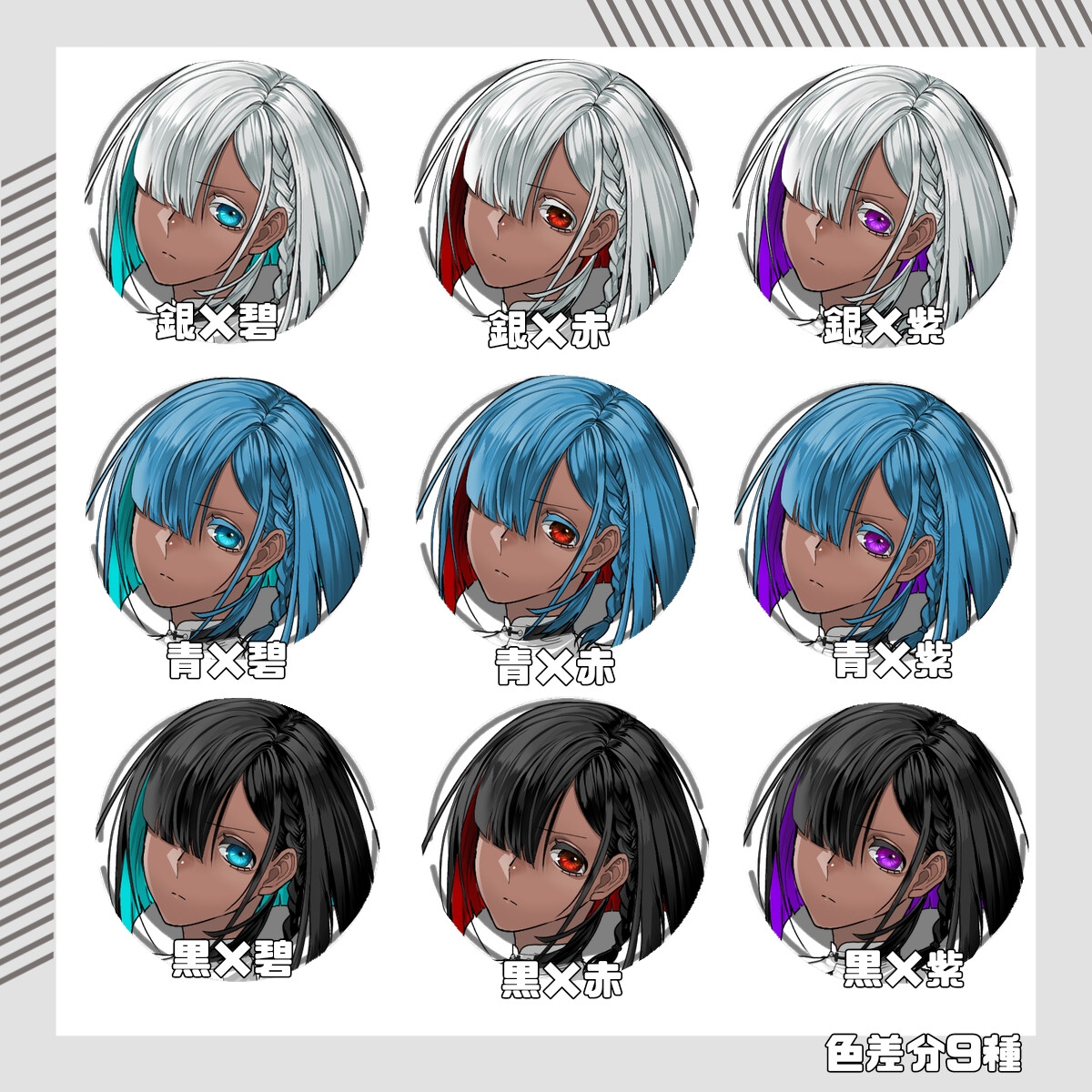 髪色、目の色の組み合わせ差分9種をダウンロードいただけます。