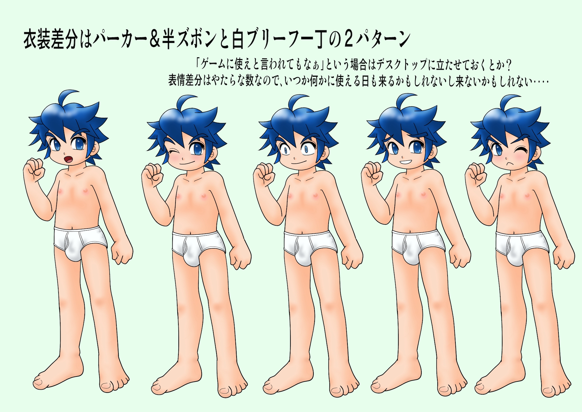 半ズボン&白ブリーフ男子の自由に使える立ち絵素材集です