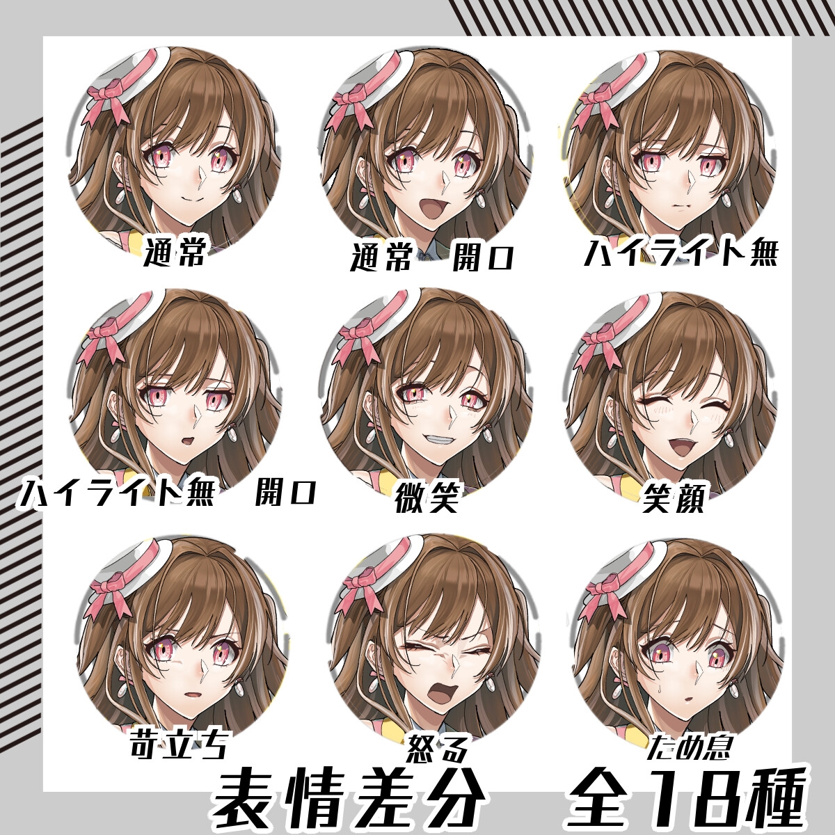 9色の色差分すべてに18種の表情差分が付いています。