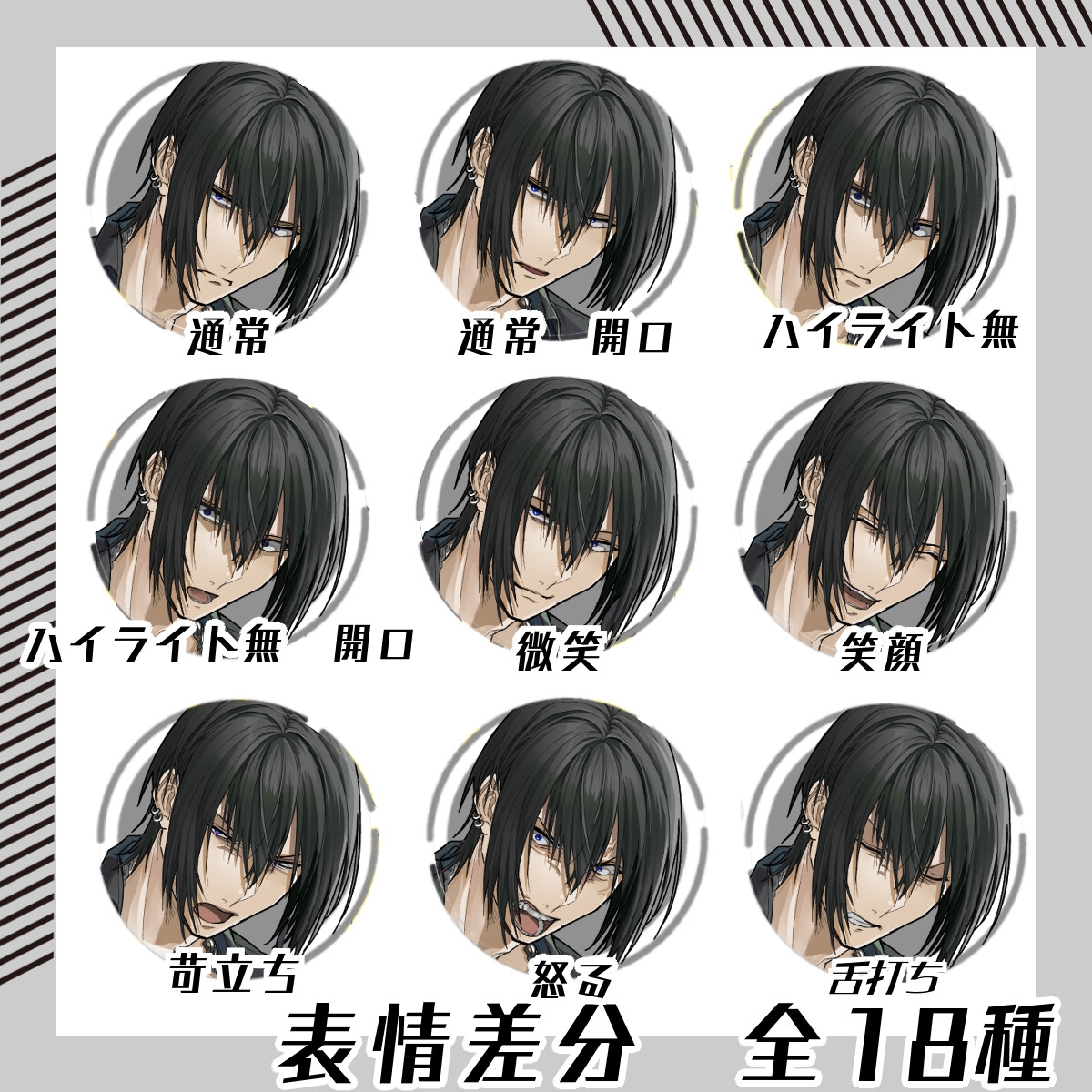 9色の色差分すべてに18種の表情差分が付いています。