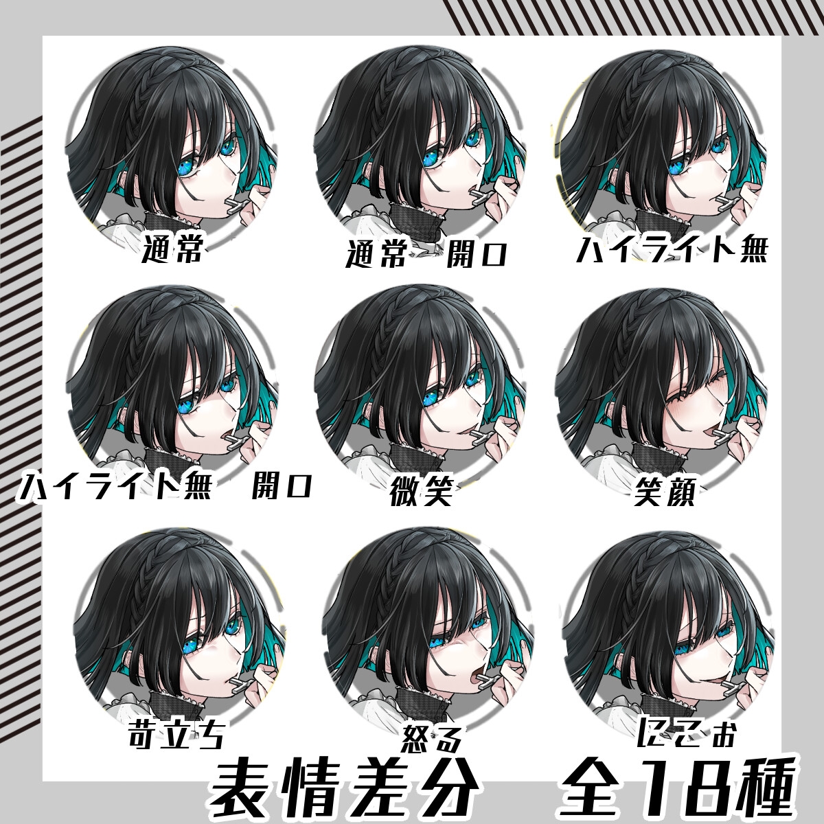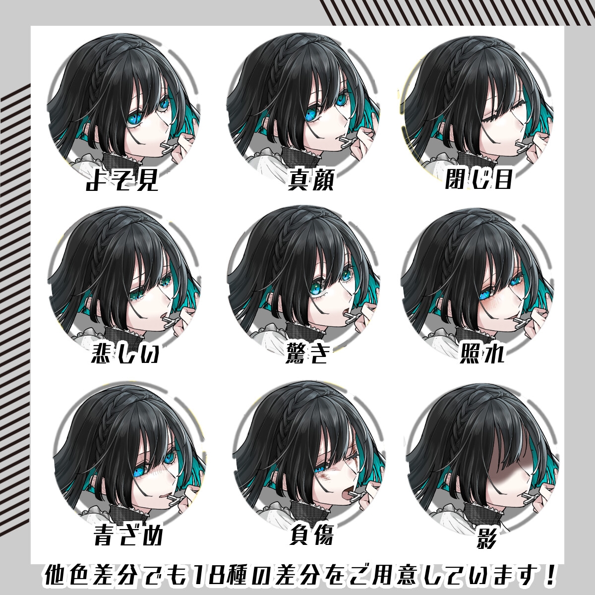 9色の色差分すべてに18種の表情差分が付いています。