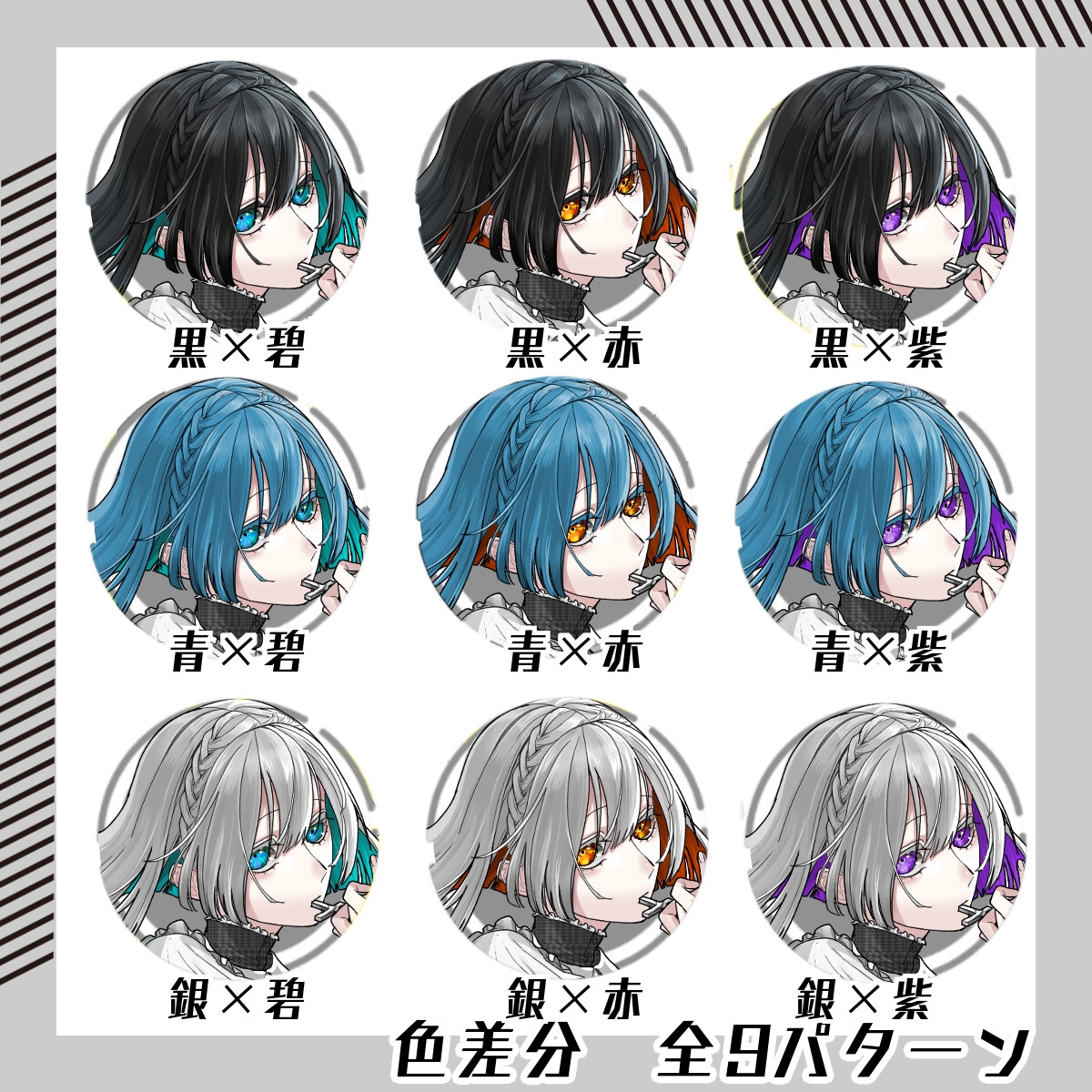 髪色、目の色の組み合わせ差分9種をダウンロードいただけます。