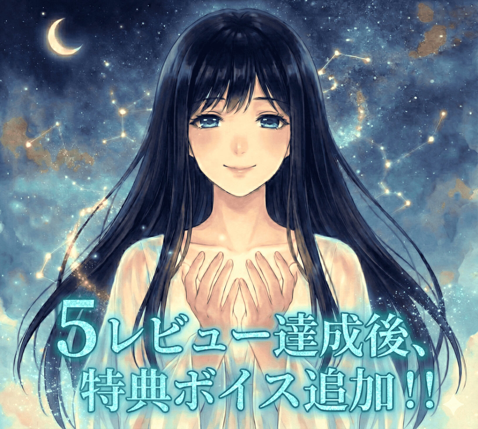 本作は、心理的な安心感を与える「全肯定」と、肉体的なリラックスを促す「ボディスキャン」を組み合わせた、究極の寝かしつけヒーリングボイスです。