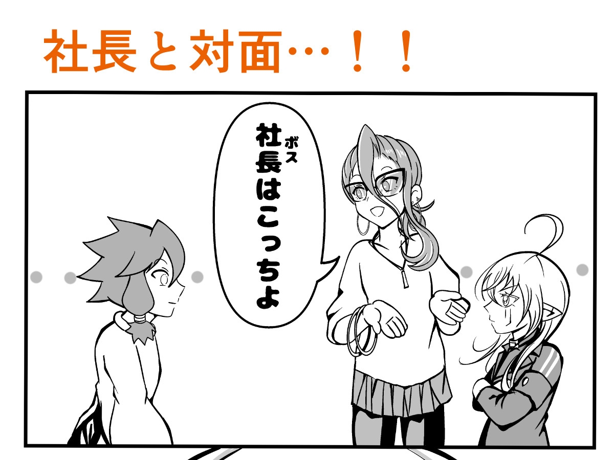 思いがけない姿の社長と対面した新入社員のジャスト。