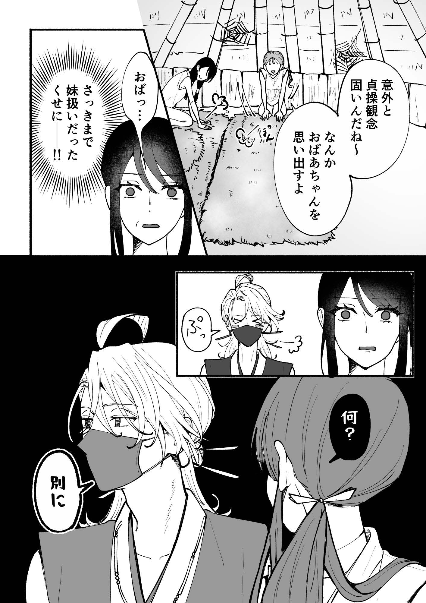 一緒の部屋で寝ることになったさくらとエニシ。さくらは彼に今までの人生を語って聞かせる。戦巫女の使命とも戦いとも無縁な、穏やかで幸せな人生。耳を傾けるエニシの反応は…。さくらは初めてエニシの本質を垣間見る——。