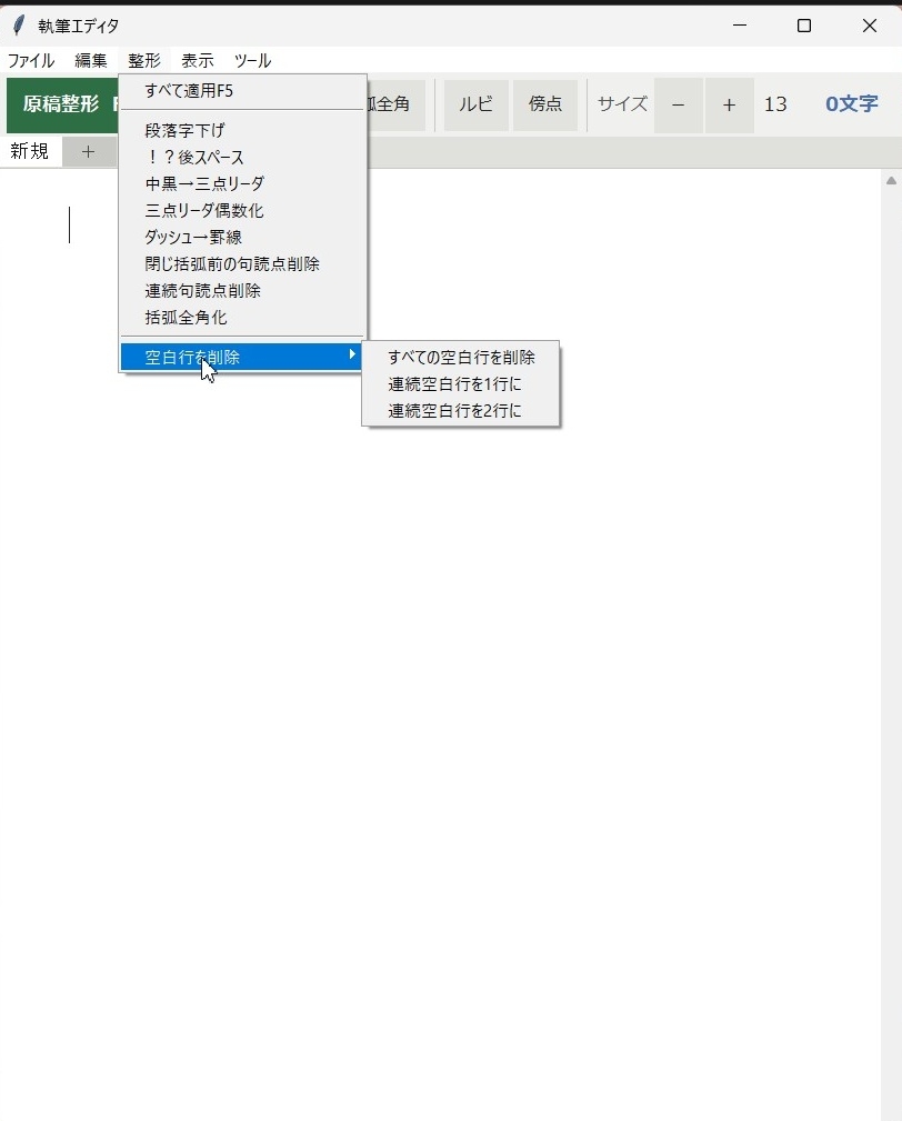 ・空白行の削除(0行/1行/2行に統一)