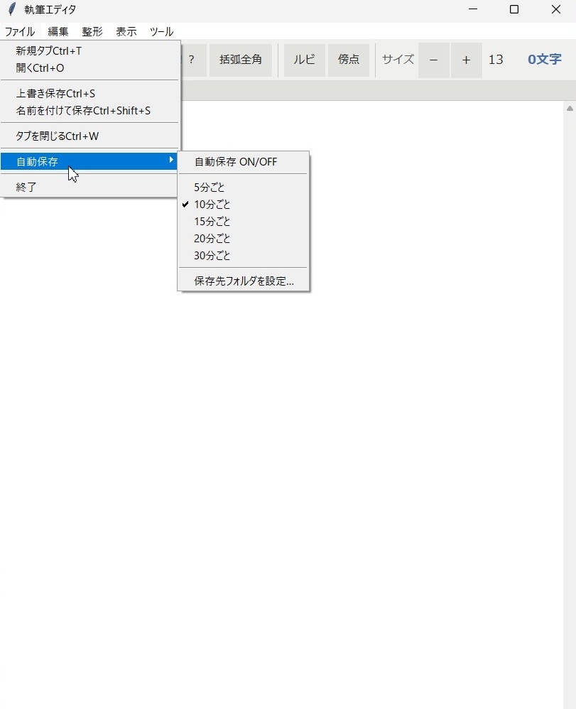 ・ファイル → 自動保存 で ON/OFF 切替