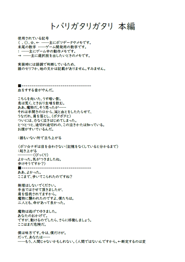 ※アップデートにより、本編テキストが相違する場合等はこちらも訂正し版を重ねます。ボツデータも同様に実装される場合があります。