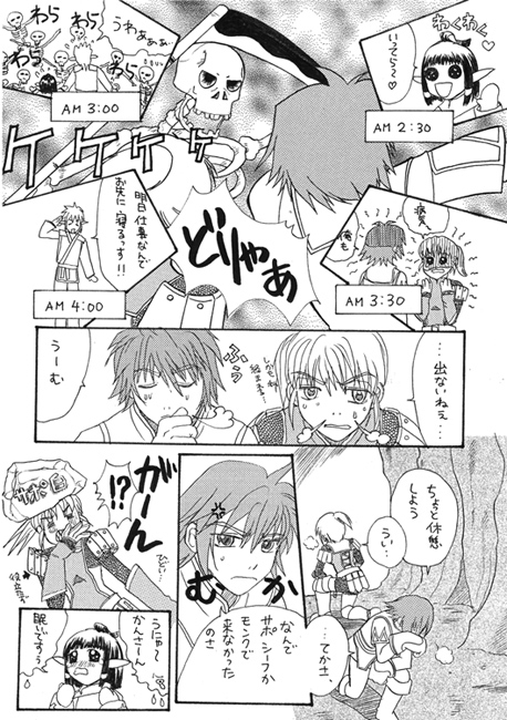 2003年8月執筆、FFXIの妄想ストマン&プレイ日記マンガです。ヒューム・タルタル多めです。ストマンは「@Vana' diel」へ続く(?)感じです。