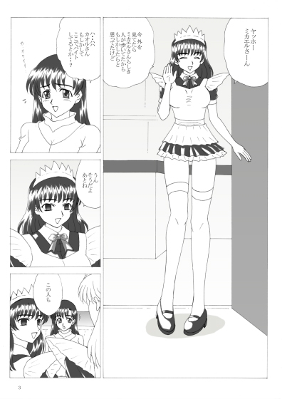 女体化した男のミカエルが、とある喫茶店でメイド服姿でウェイトレスの