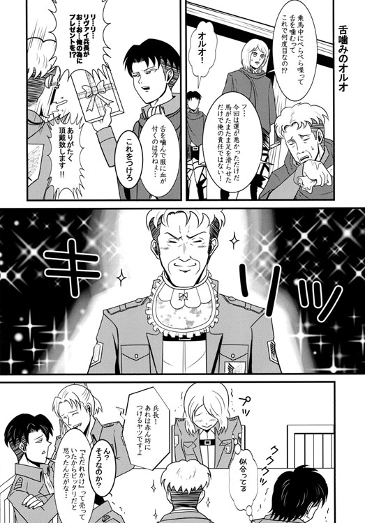 オルオ中心リヴァイ班ギャグ。