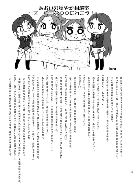 あおいがおとめ達と近所のスーパー銭湯に行く小説を収録。