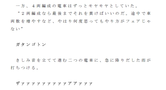 しかし4両編成の電車は一つだけ、2両編成の電車に対し、気に食わない点があった・・・。