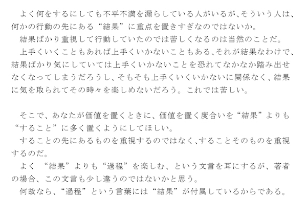 何かの行動の先にある“結果”に重点を置きすぎなのではないか。