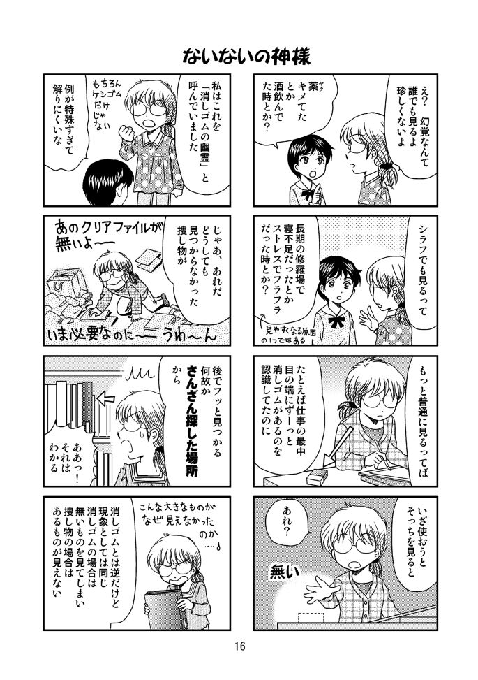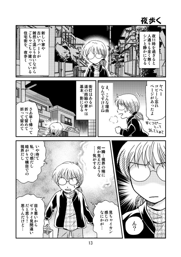 日常系エッセイ漫画。「パソコンが〆切寸前に落ちた!?」「映画館で見た奇妙なもの」「本当にあった詐欺の話」など。ちょっと怖い…というか、笑える話なのか? みたいなエピソードばかり集めてみました。