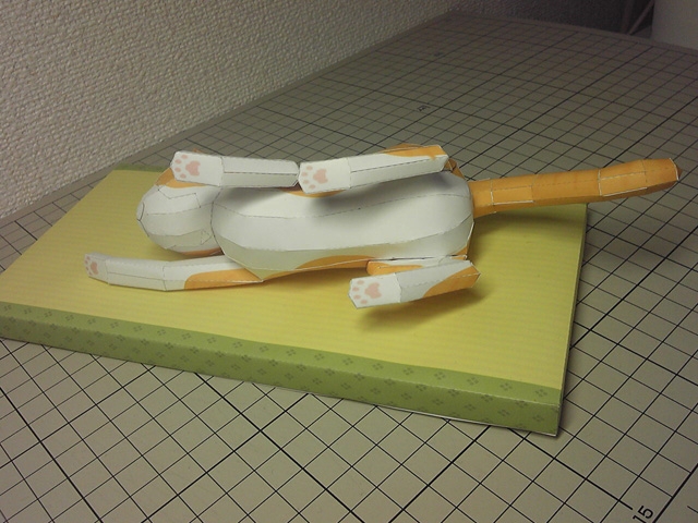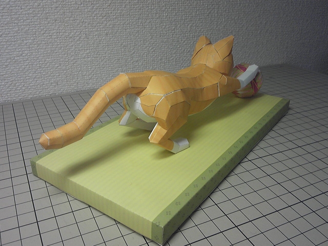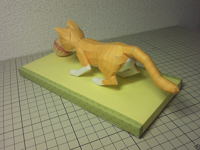 猫が毬と戯れているペーパークラフトです。