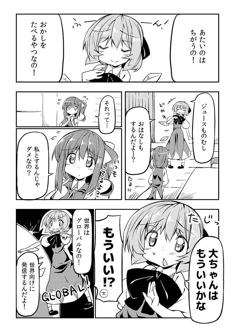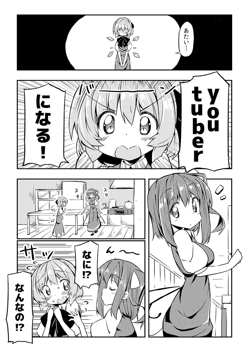 「あたいyo○tuberになる!」突然宣言し始めたチルノちゃん。大ちゃんはyo○tuberをよくわかってないし、チルノもふんわりとしかわかってないみたい。そもそも道具とかどうするの?はたしてチルノは大物yo○tuberになれるのか?というほんわか系大チルギャグ本です!