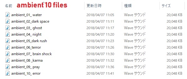 計47ファイルを【wav】【mp3】【ogg】【ループタグ付きogg】のそれぞれの形式で収録