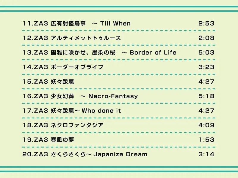 90年代の携帯ゲーム機を楽しんだ世代に贈る、インスト音楽集。「東方妖々夢」の全曲を軽快なタッチにアレンジした全20曲/約69分。