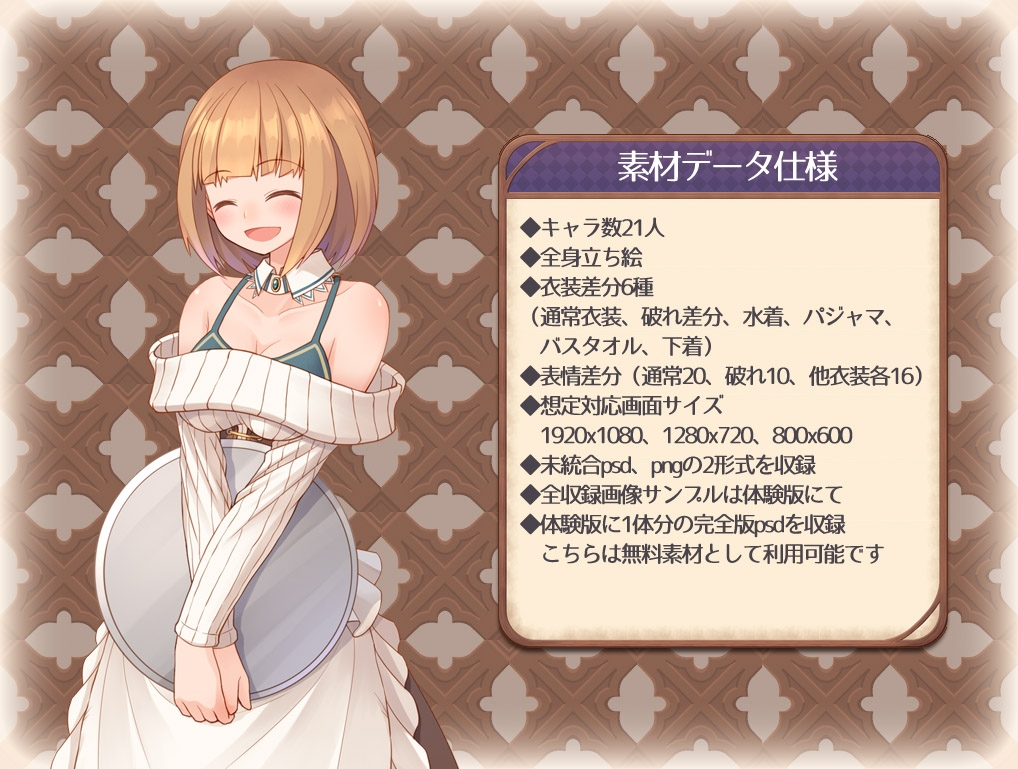 こちらは無料素材として製品版と同じ規約の元素材利用が可能です。