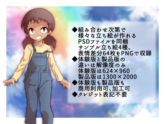 髪型、服装、顔等の組み合わせで色々な立ち絵が作れます。