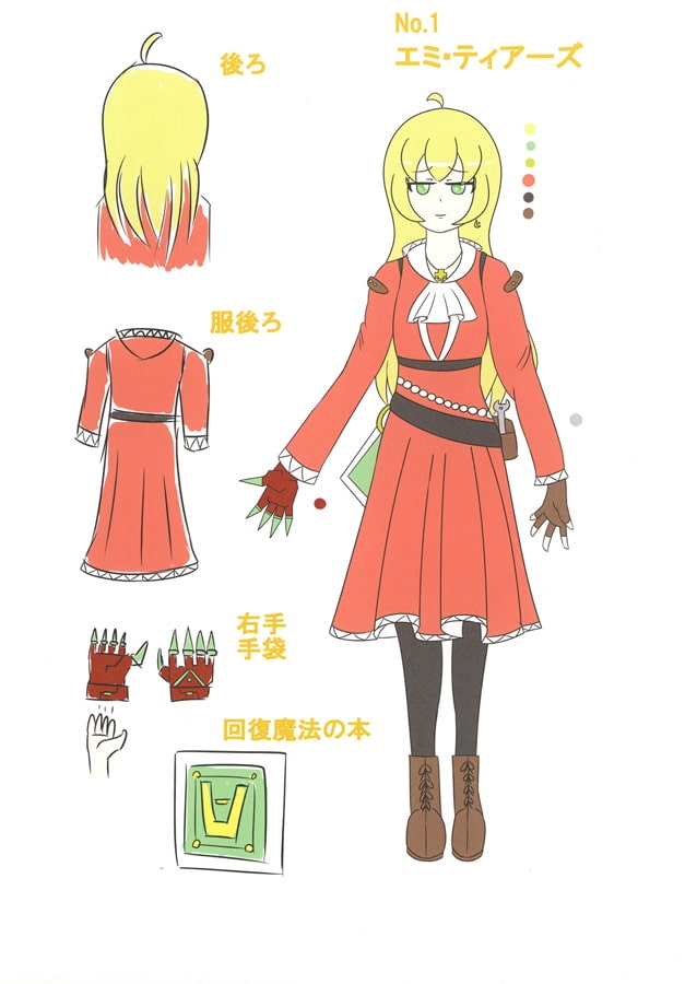 オリジナルキャラ「エミ・ティアーズ」「彩」「ミィ・ガーネット」「ハルコ・スチールハット」の設定+イラスト集です。