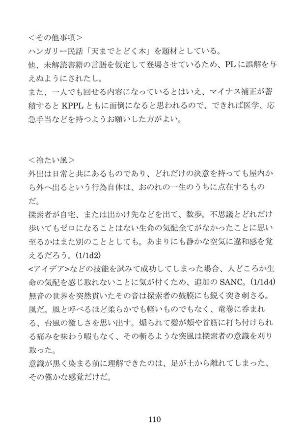 新規シナリオ二本に加え、公開済みシナリオのリプレイの小説をご用意。やりがいのある140Pです。