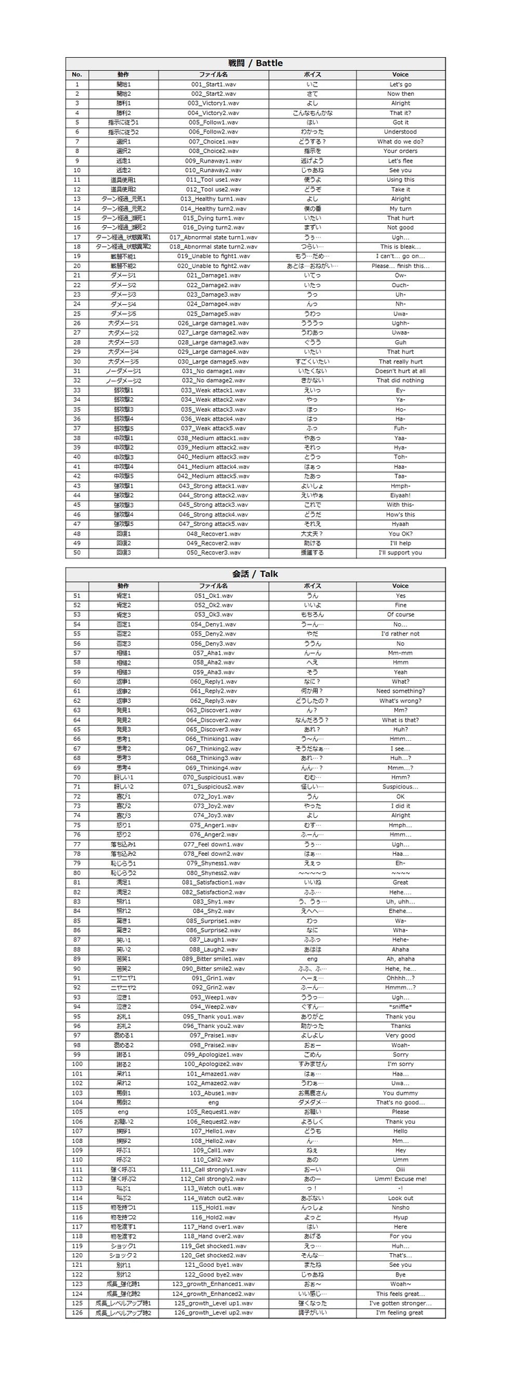 ・戦闘ボイス 全50ボイス(攻撃・ダメージ・回復など)
