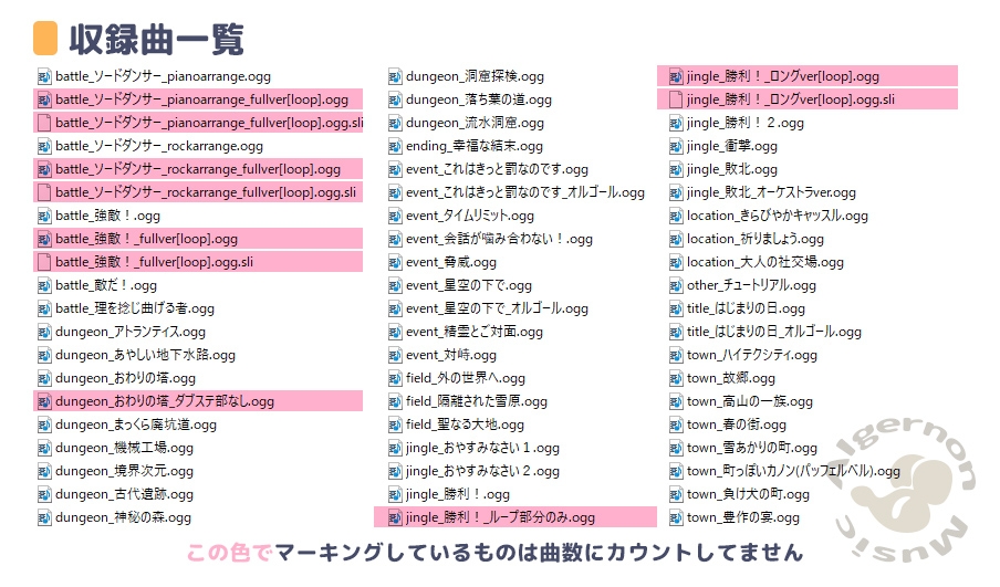 一部のoggはループタグ、sliあり。