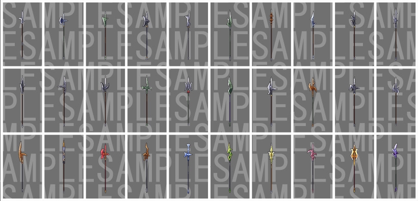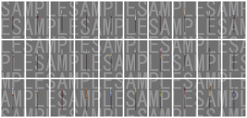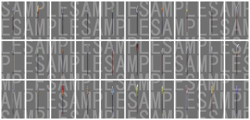 100*100pix前後のキャラクター画像に合わせる事を想定とした武器の画像集です。