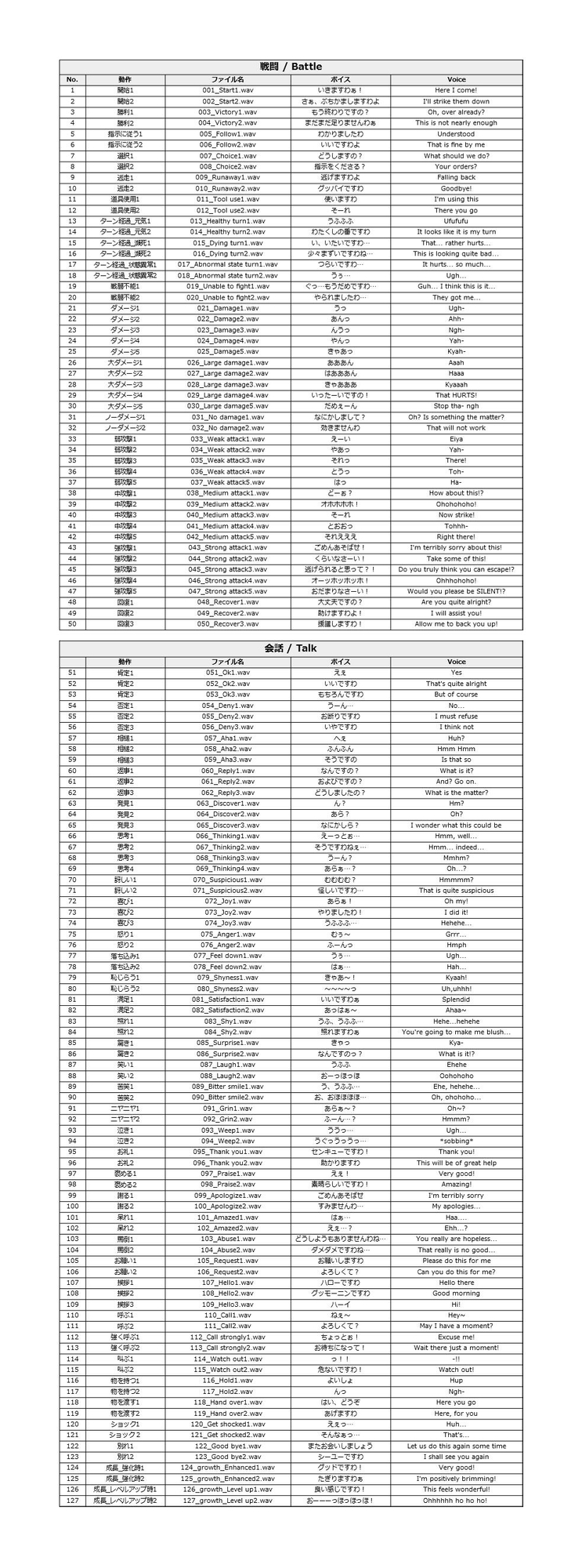 ・戦闘ボイス 全50ボイス(攻撃・ダメージ・回復など)