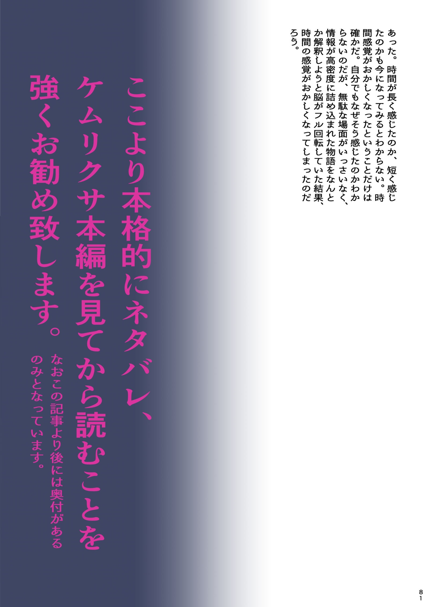 コピー誌版では印刷費用の関係で省いたケムリ○サ感想も収録。