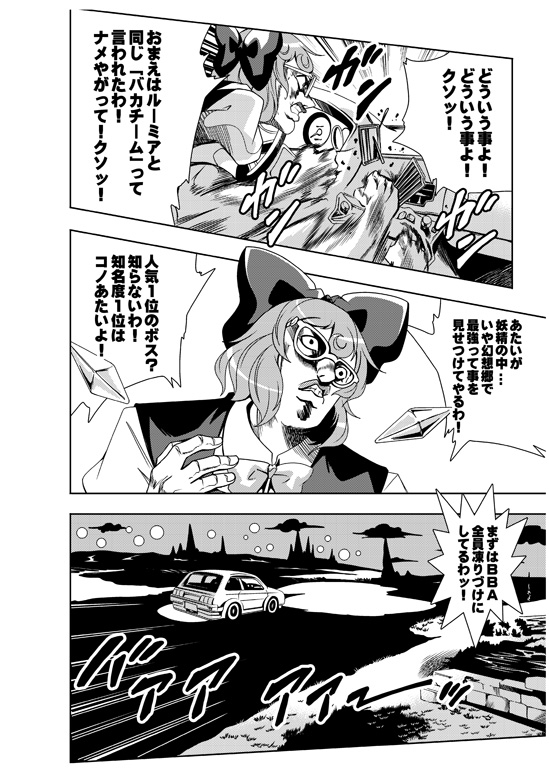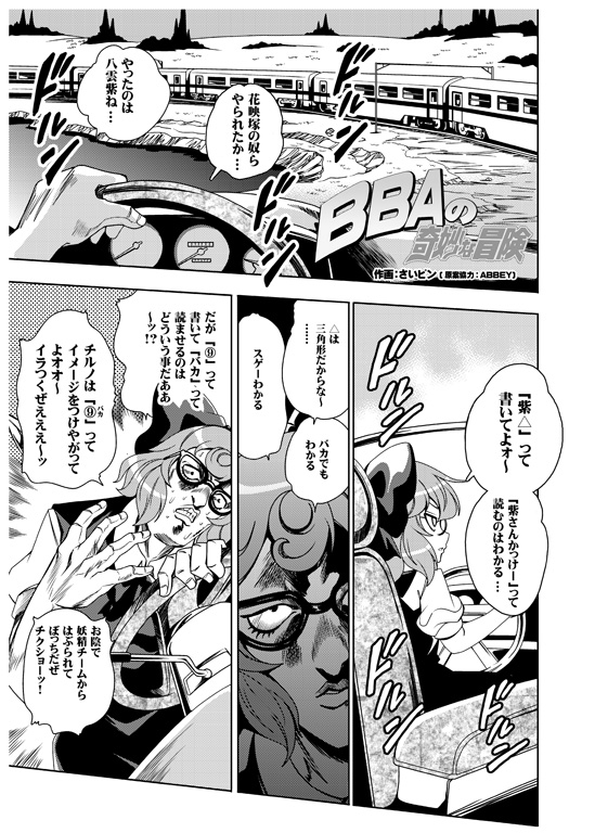 「東方」×「ジョ〇ョ第5部」パロディ、「マルキュー・アルバム」の巻。風見幽香と東方五大老が手を結んだチーム「ババアッショーネ」が「自機」になる日を夢見て奮闘します。今回の敵は「チルノ」突然キレるバ〇=チルノとBBA達の熱い戦い、勝つのはどっちだ?C97新刊