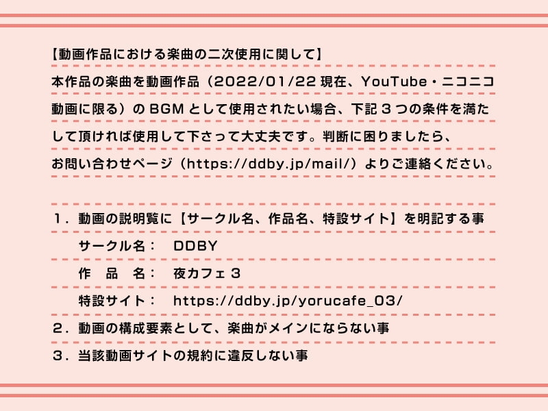 東方妖々夢の原曲をカフェ風にアレンジした、全17曲(約1時間7分)。