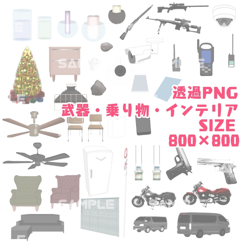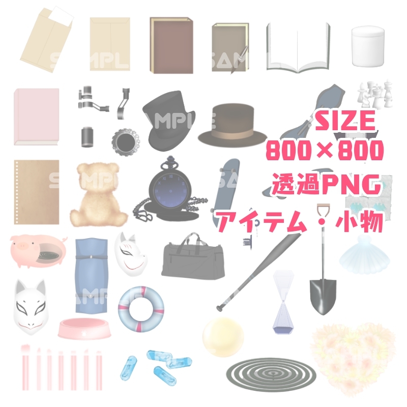 アイテム・小物・背景素材・パターン素材・アイコン素材・人物、人外、シルエット素材など、色々使える素材セットです。