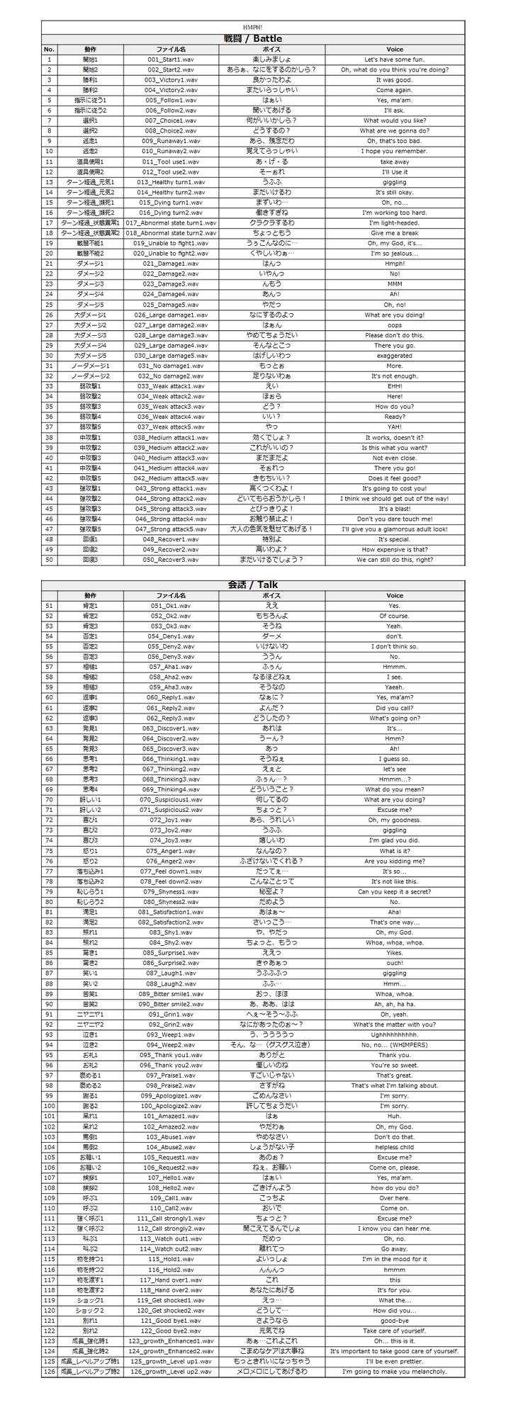 ・戦闘ボイス 全50ボイス(攻撃・ダメージ・回復など)
