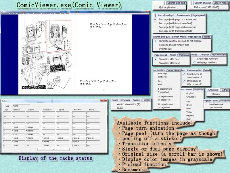 You may prepare your own manga and comics, image files, and sound files to create motion comics with this software.