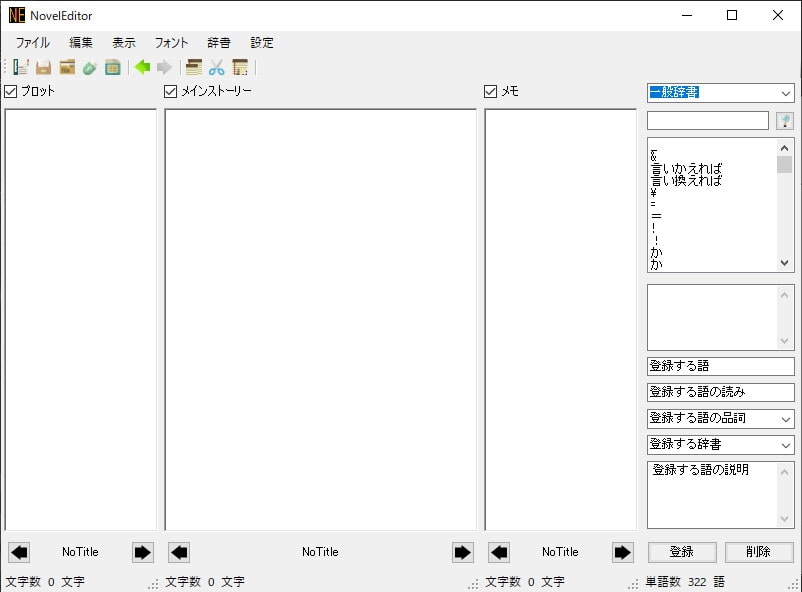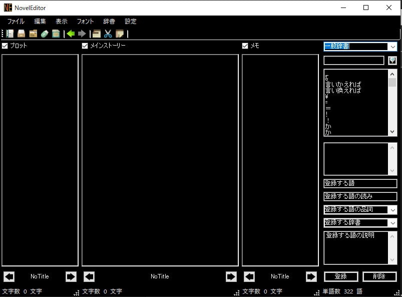 プロットを書いたり、本文を書いたり、メモとったりが一つの画面上でできるようにしてあります。