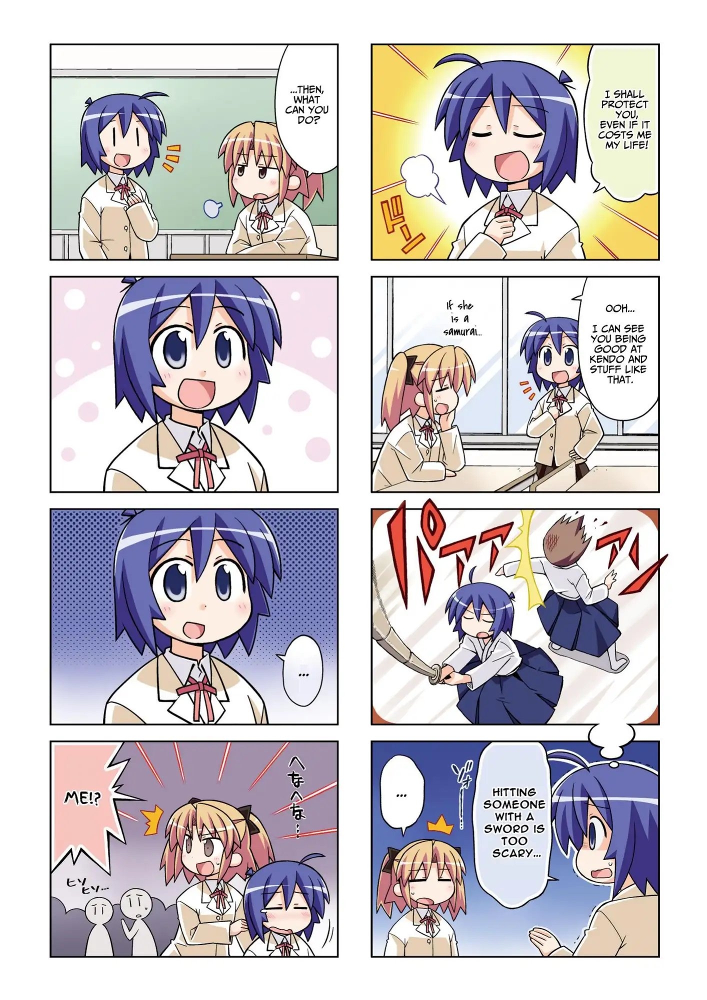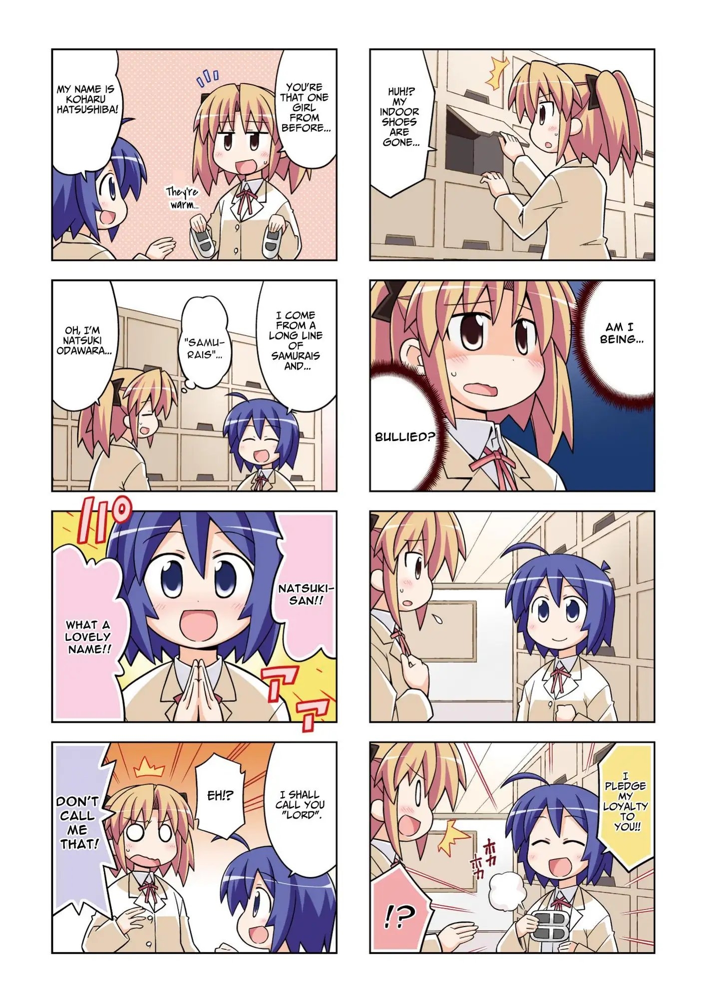 武士に憧れる、ドジで元気な女の子コハルと世話焼きな女の子なつきのドタバタ日常学園4コマコメディ。