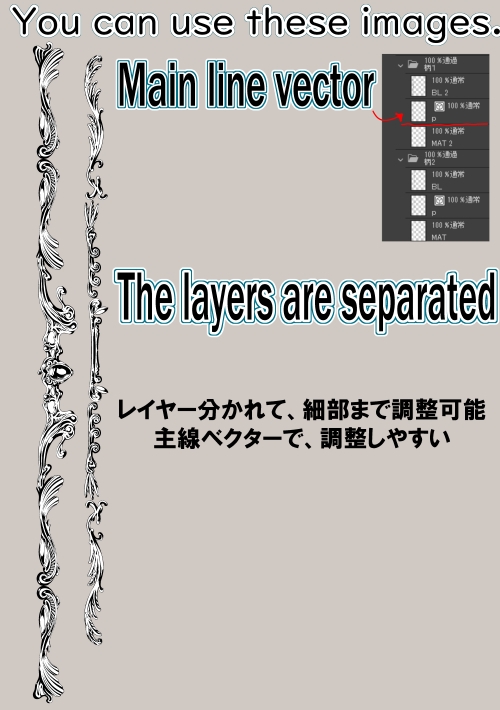 画像はレイヤー分割、主線ベクターで調整しやすく、